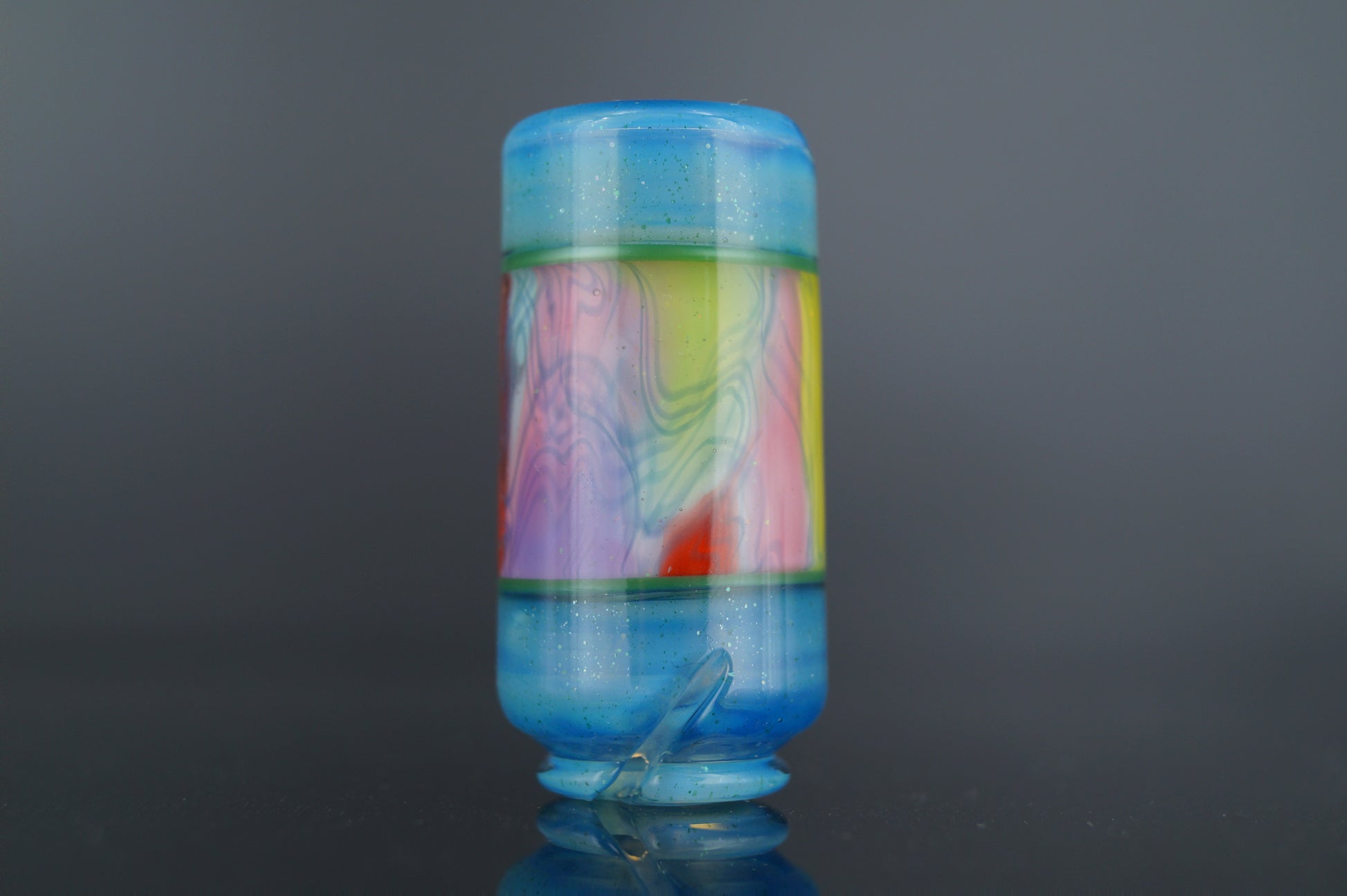 Pivot Spinner Top - Blue Stardust over Ghost and Crushed Opal Rainbow scribble