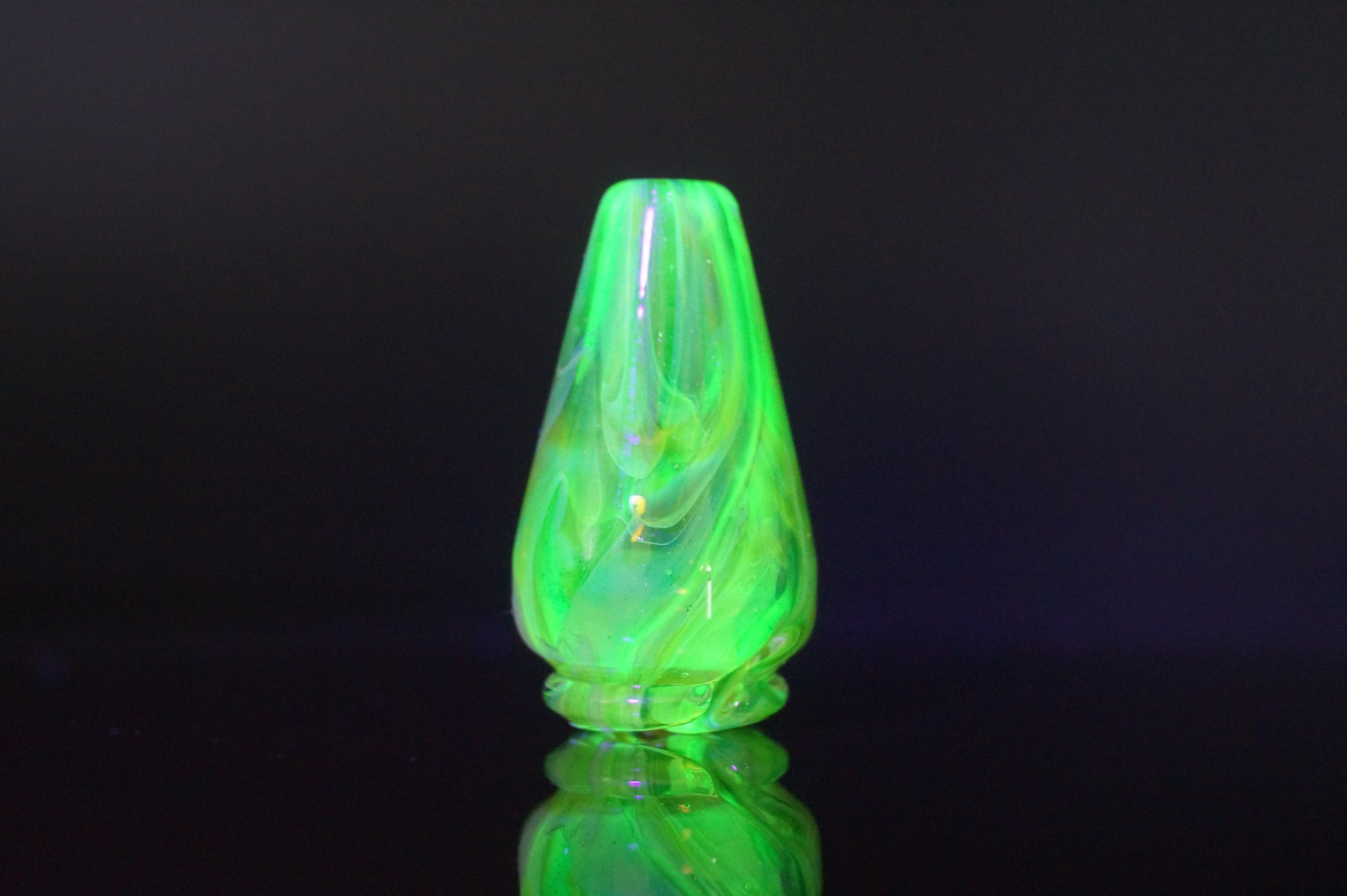 Glass replacement top for this Pivot. This design includes 2 intake jets to allow for additional airflow to spin a glass pearl.