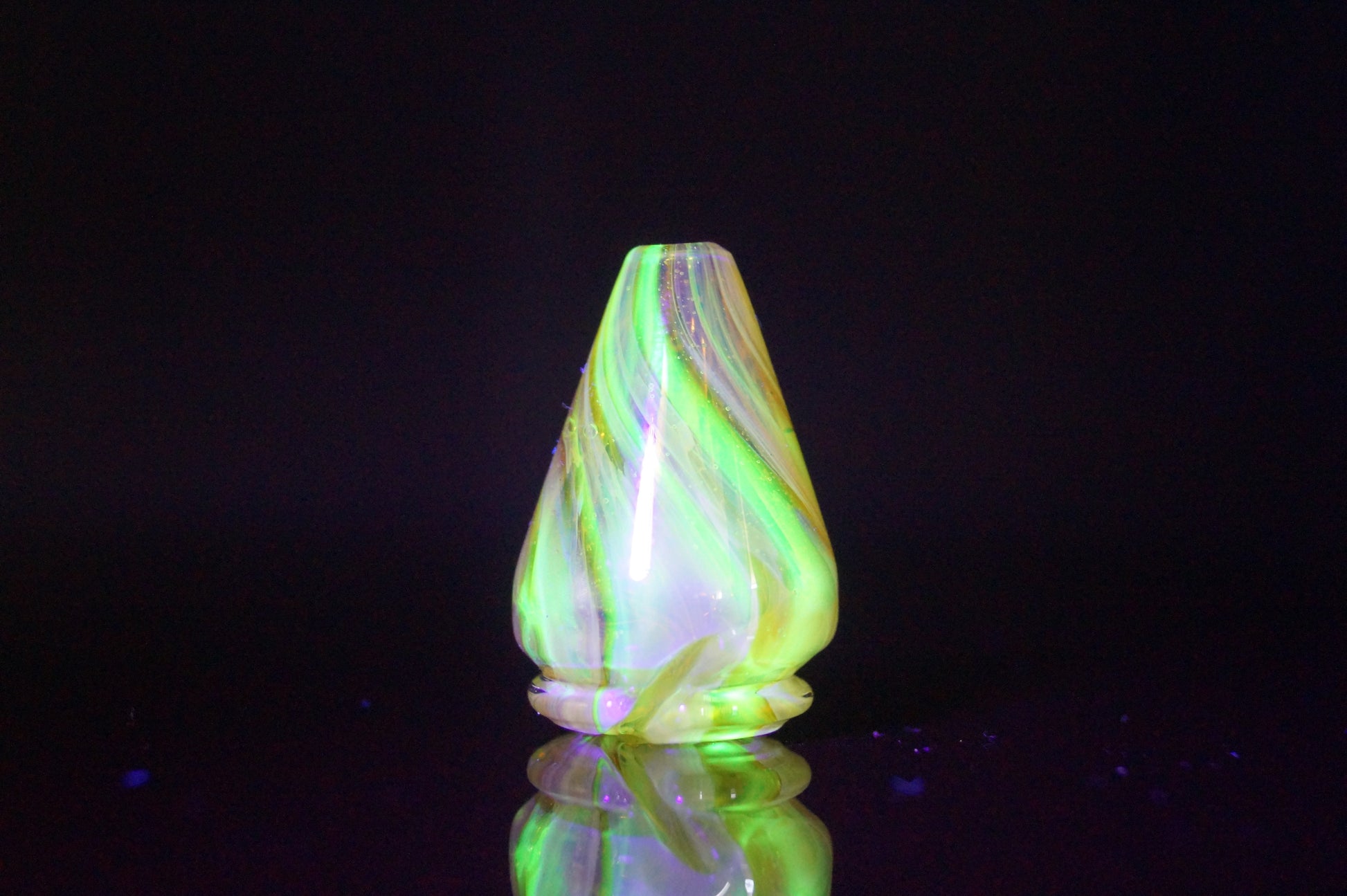 Glass replacement top for this Pivot. This design includes 2 intake jets to allow for additional airflow to spin a glass pearl.